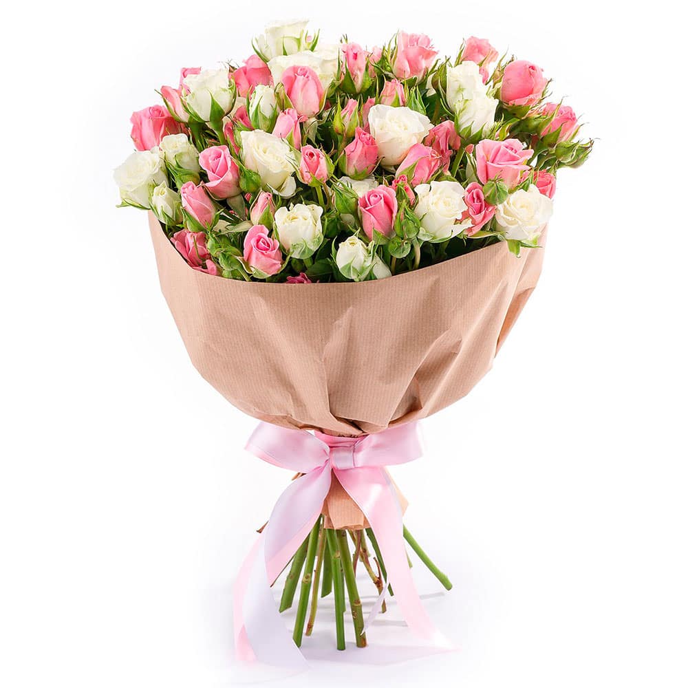Букет из белых и розовых кустовых роз «Звездопад» с гарантией качества, цены и быстрой доставки!