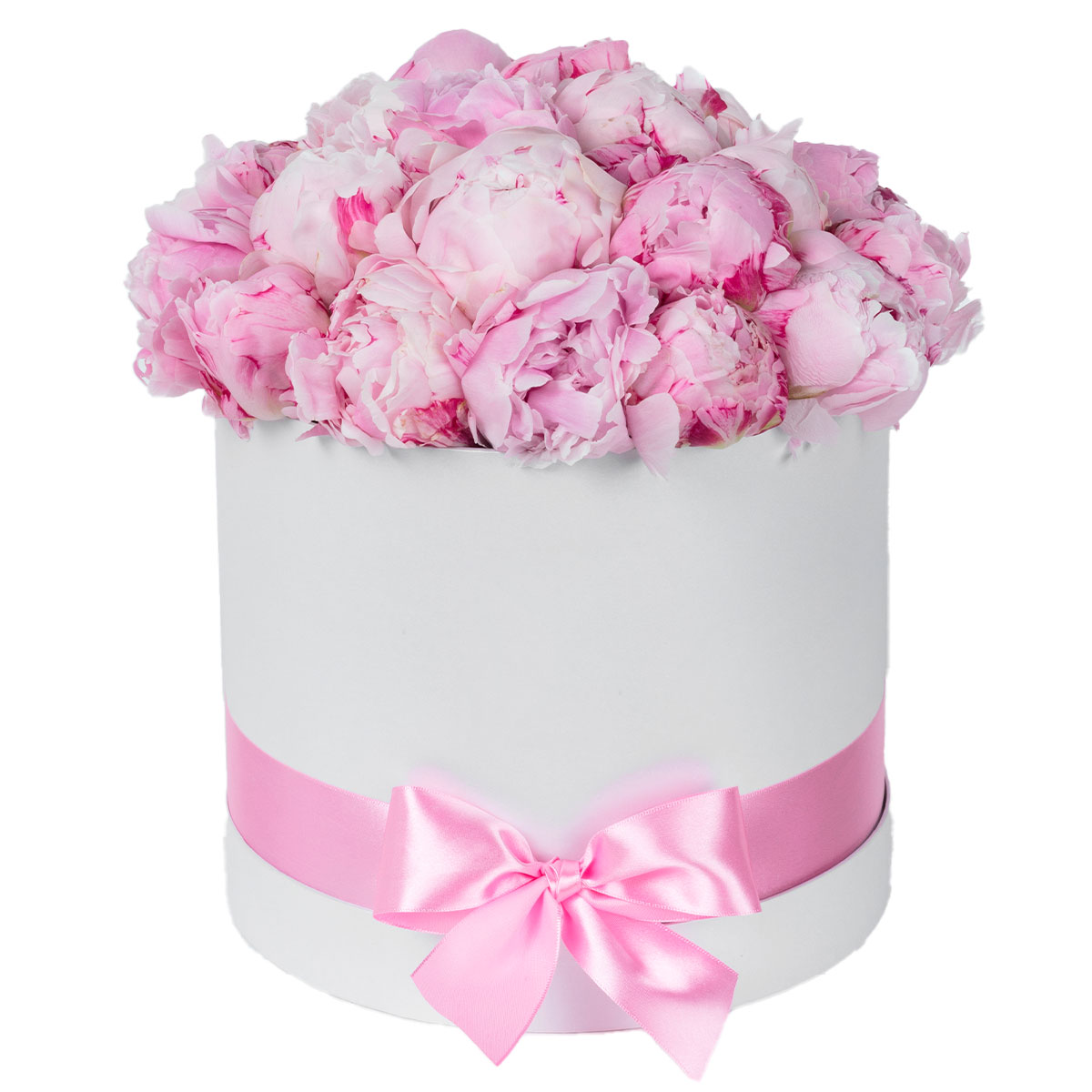 Шляпная коробка с пионами «Волшебные лепестки» с гарантией качества, цены и быстрой доставки!